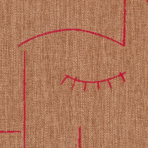 ラインで描かれたほほ笑みがユニーク。色は温かみのある モダンカラーで、ナチュラルでピースフルな生地です。 大人の遊び心を表現しています。